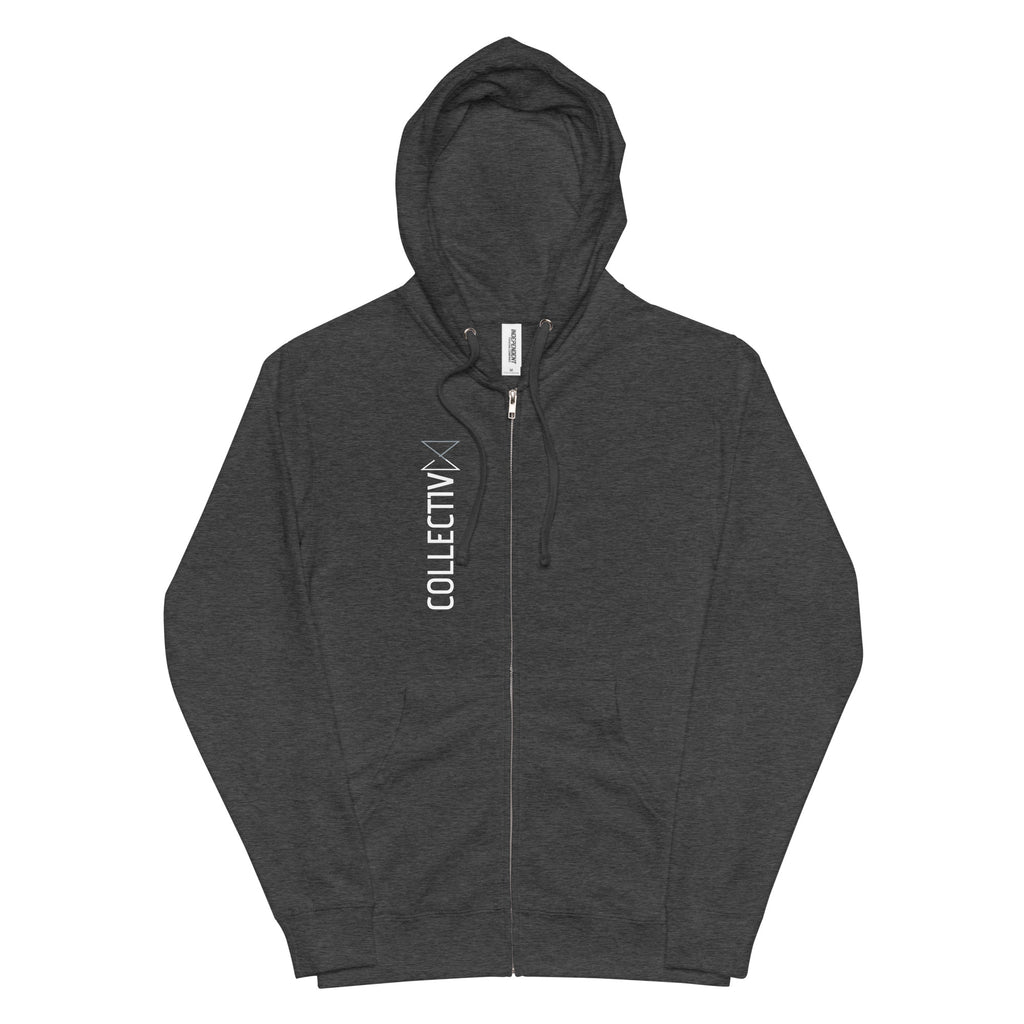 COLLECTIV GRAPHIC VERTICALLY ON THE FRONT WITH GRAPHIC ON BACK OF THIS PREMIUM ZIP UP.